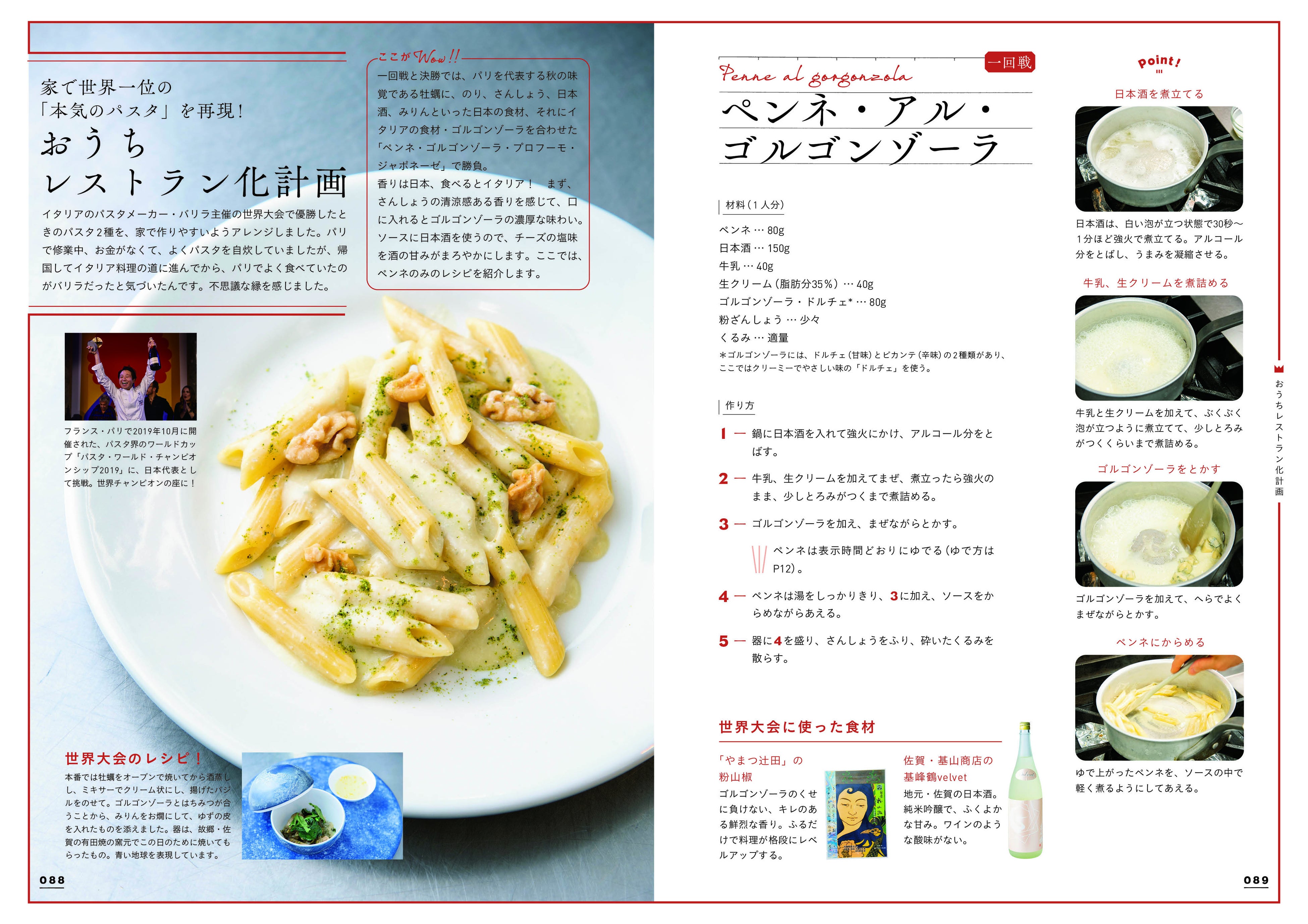 パスタの世界大会で一位を獲得したときのレシピ「ペンネ・アル・ゴルゴンゾーラ」と「スパゲッティ インテグラーレ インサルサ」の二品、どんな味なのか食べてみたい!と思いませんか?
