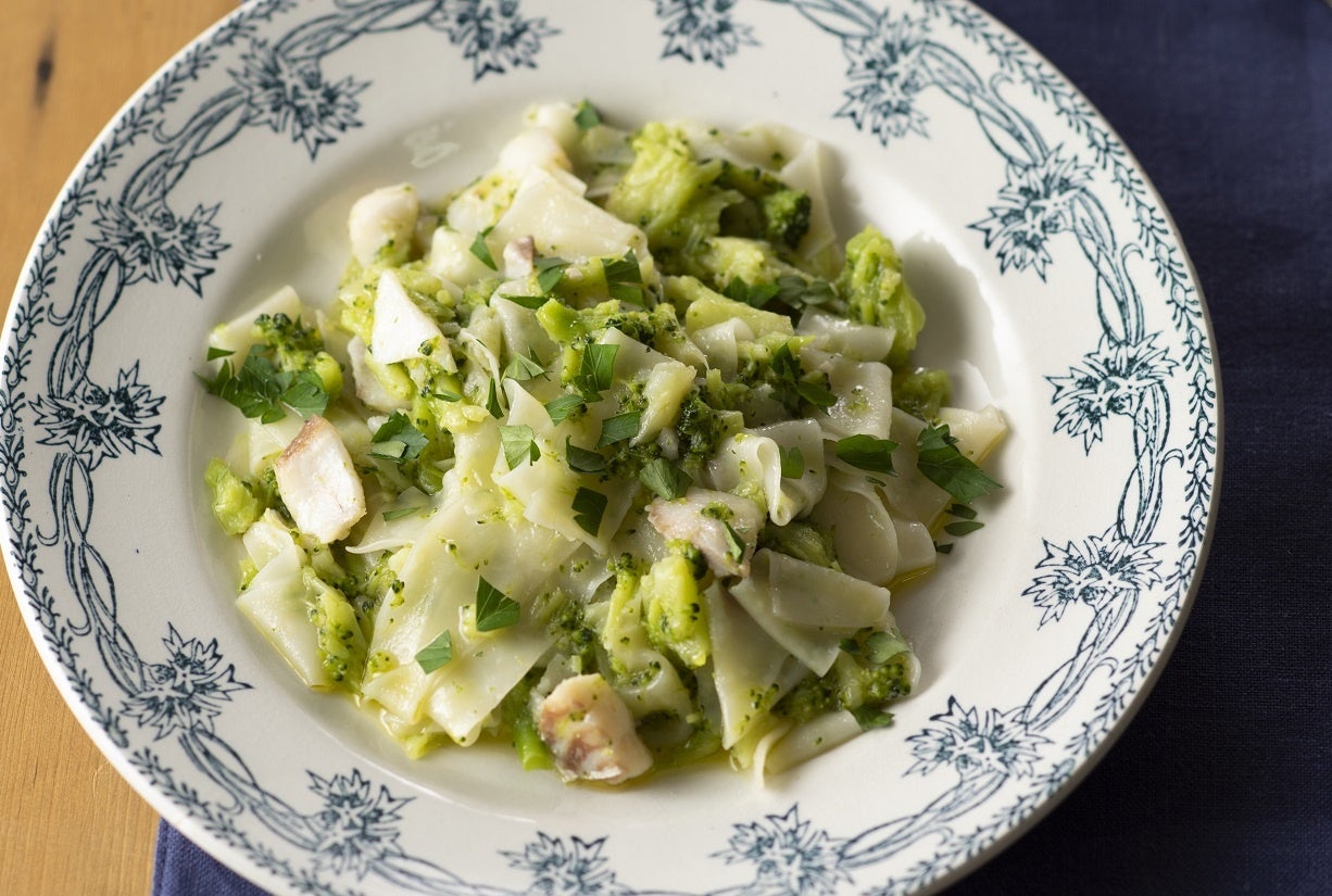 - 「餃子の皮」を手打ちパスタにしてしまう! 「餃子の皮でたらとブロッコリーのパスタ」