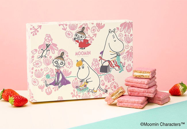 シュガーバターが香るミルククリームサンドをストロベリーショコラで包みこみました。キュートないちごミルクカラーのムーミンのパッケージ。 *4月下旬頃まで販売