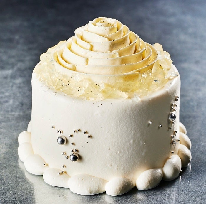 トップに白いバラをクリームで象ったデコレーションケーキ。 *販売:3月4日(金)~14(月)