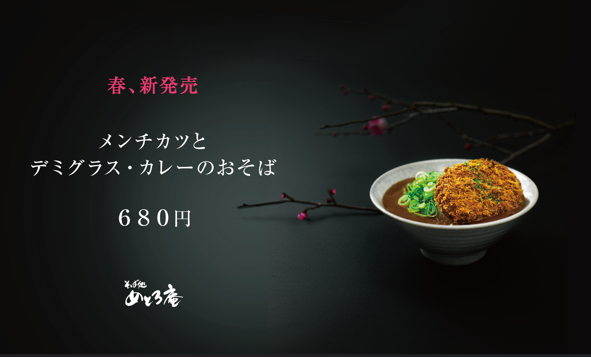 東京メトロのエキチカに展開するそばブランド「めとろ庵」の、春の季節限定メニュー「メンチカツとデミグラス・カレーのおそば」は、これまでのカレーそばとは一線を画した自信作です。