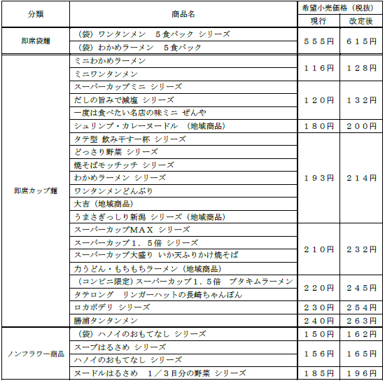 エースコック株式会社(本社:大阪府吹田市 社長:村岡寛)は、即席袋麺、即席カップ麺、ノンフラワー商品の価格を、2022年6月1日(水)の出荷分より改定いたします。