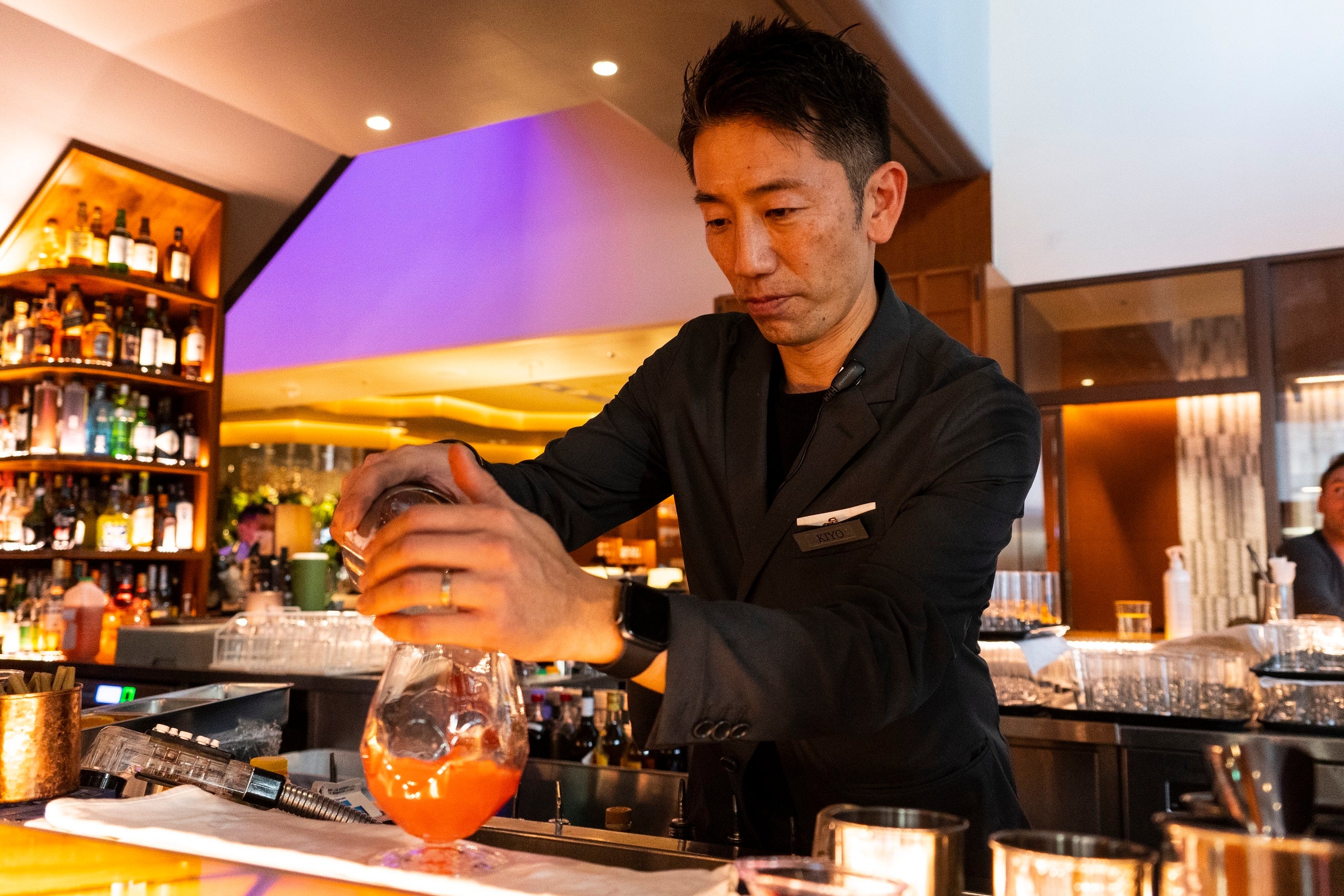 「なにより着心地が良いですね。伸縮性があってシワにならずに動きやすいですし、撥水加工されていて汚れにくい。たくさんのお客様にも“似合うね”と声をかけていただきました!デザイン性も高く、チャック付きのポケットがついていて、貴重品も携帯できるところが便利です。」