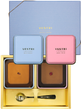 金のスプーンですくって食べるジャンドゥイアチョコレートはVESTRIの看板商品です。