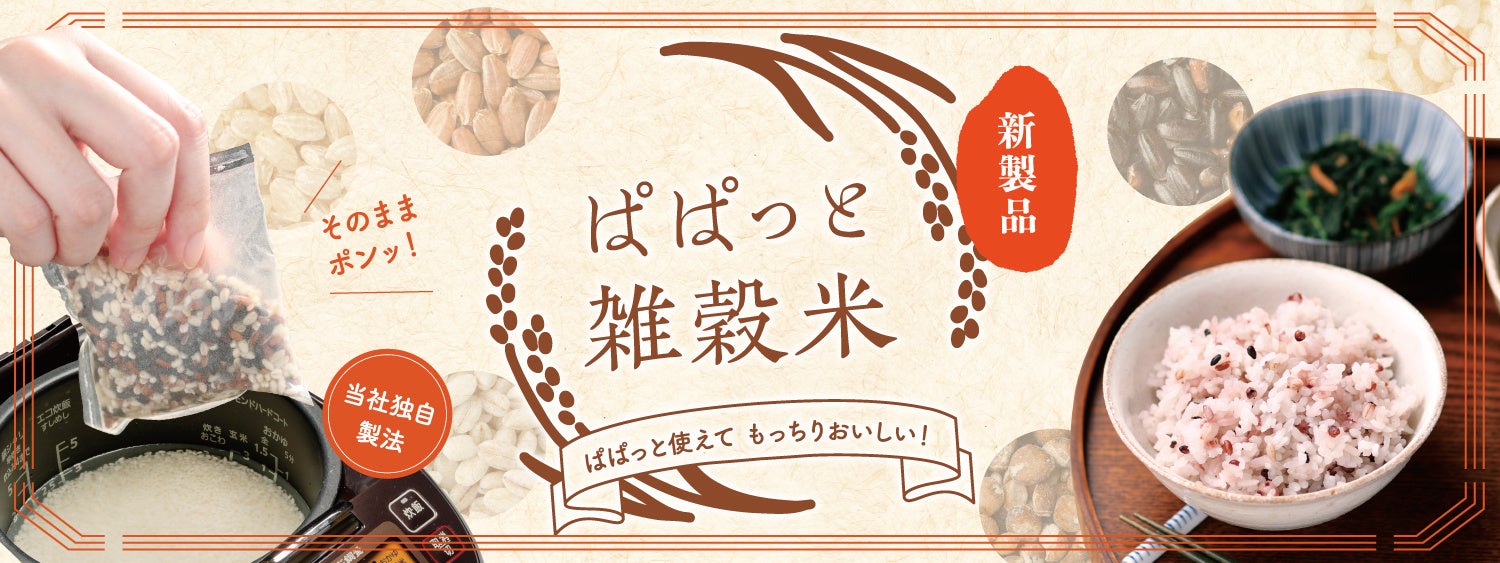 おいしくて栄養豊富な雑穀米。食物繊維やポリフェノールなどの栄養素を含んでいるので、食事の栄養バランスが気になる方にぴったりの食材です。『ぱぱっと雑穀米』は和洋中すべてのメニューに合いますので、ぜひ一度お試しください。