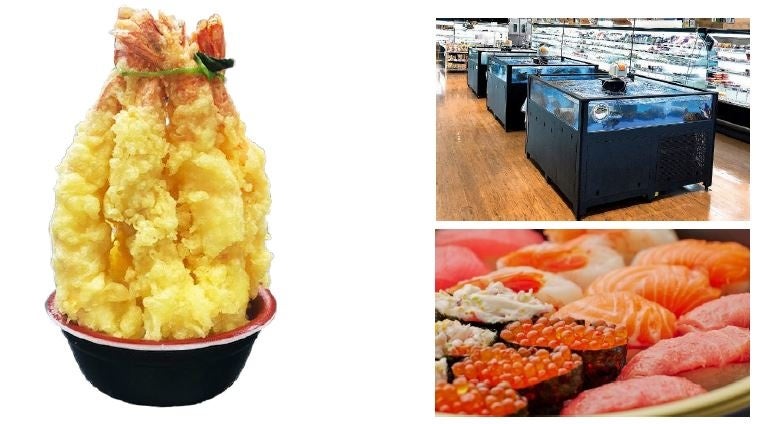 ▲左:豪快な盛り付けが映える!天丼「えび天タワー」 上:3台に増設したいけす 下:人気の寿司