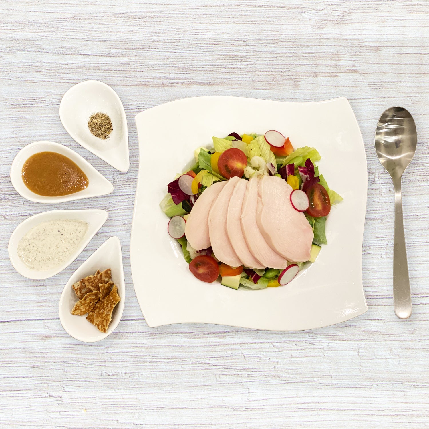 ▼栄養満点!「しっとり柔らか鶏むね肉たっぷりチョップドサラダ 3種」