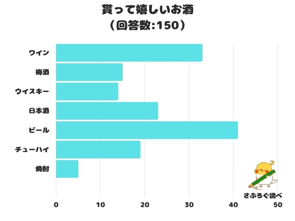 貰って嬉しいお酒をアンケートにて調査したところ、1位は「ビール」でした。