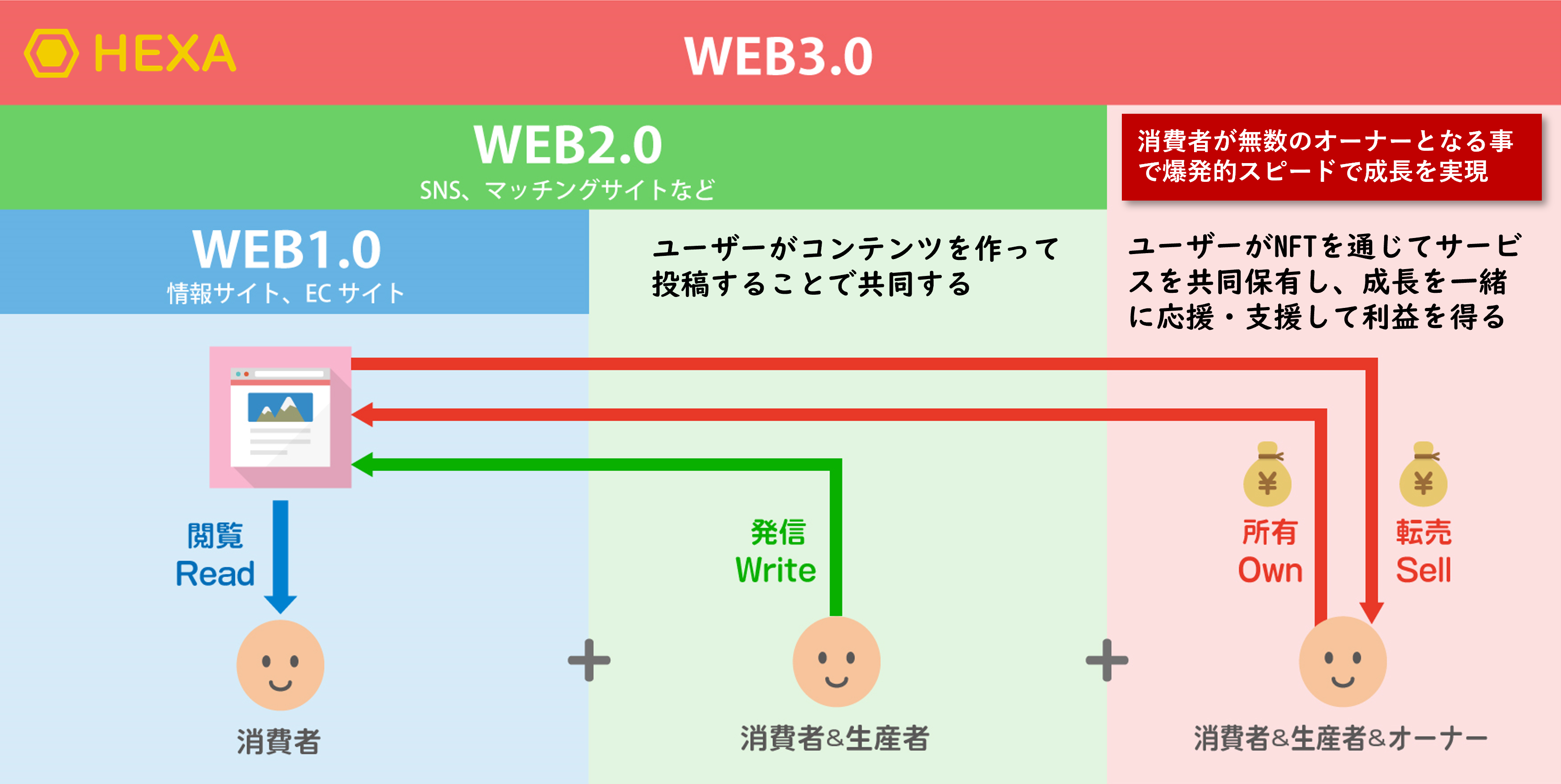 HEXA(ヘキサ)ではWEB3.0のファンが所有者になってサービスの成長を実現するという仕組みをリアル店舗に応用した「スポンサーNFT」のサービスを提供しています。