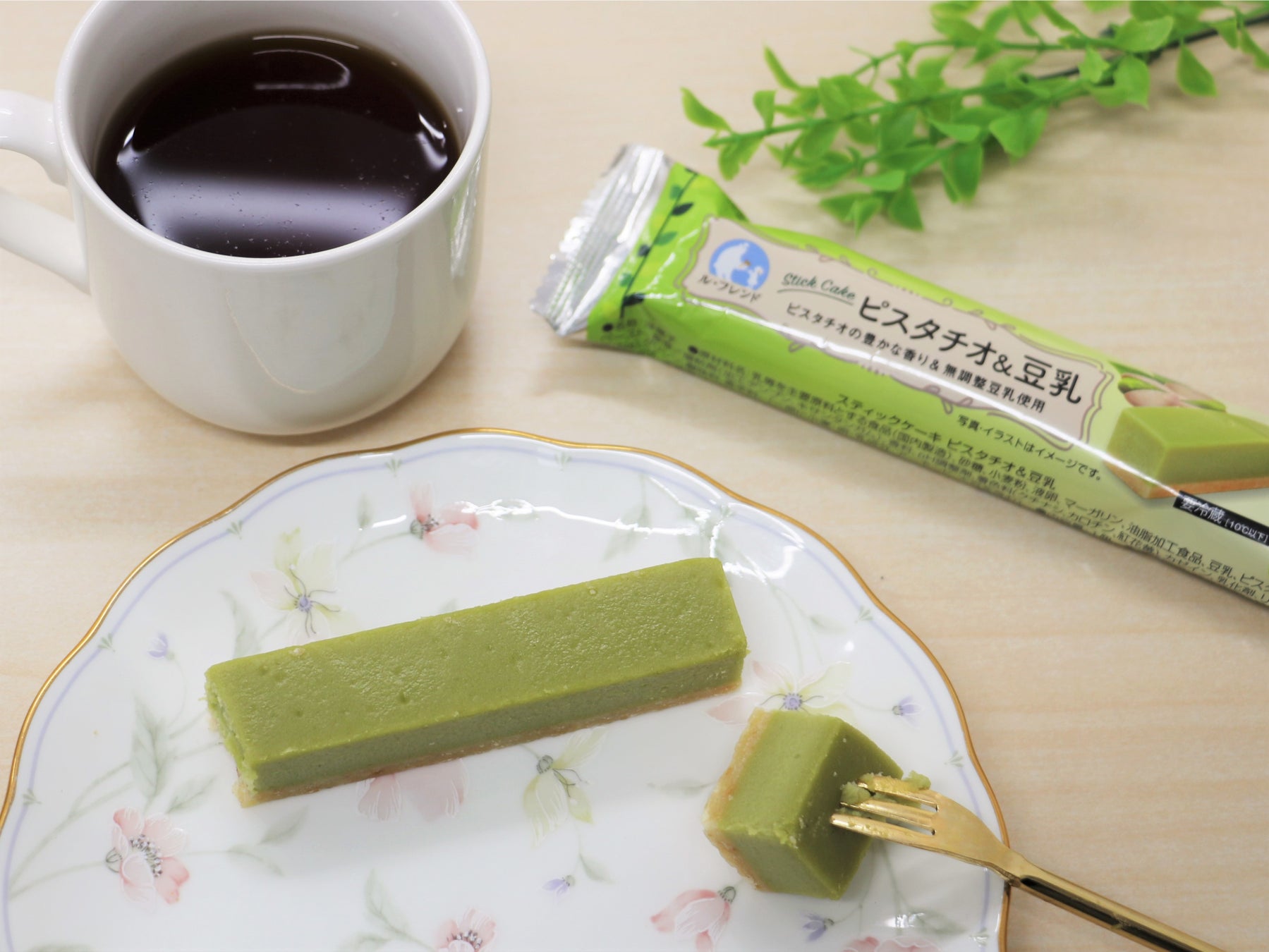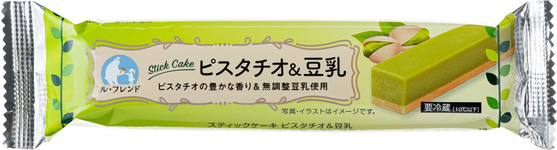 「スティックケーキ ピスタチオ&豆乳」は、ピスタチオペーストを使用することで、ピスタチオ特有の香ばしい香り、まろやかで濃厚な味わいを再現しています。