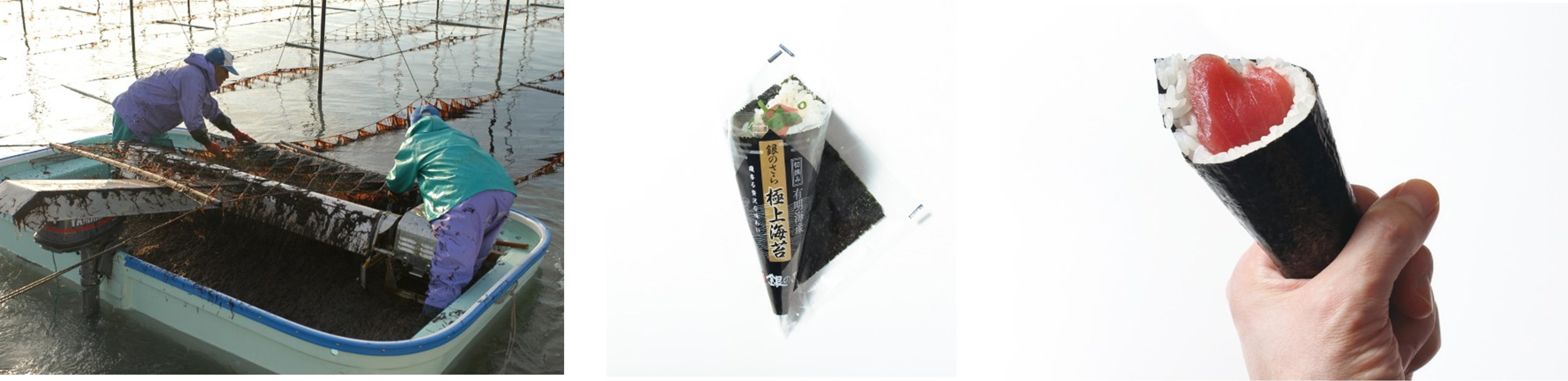 漁獲網から最初に収穫された、とても柔らかく風味豊かな海苔で、いっそう美味しく手巻き寿司をお楽しみいただけます。