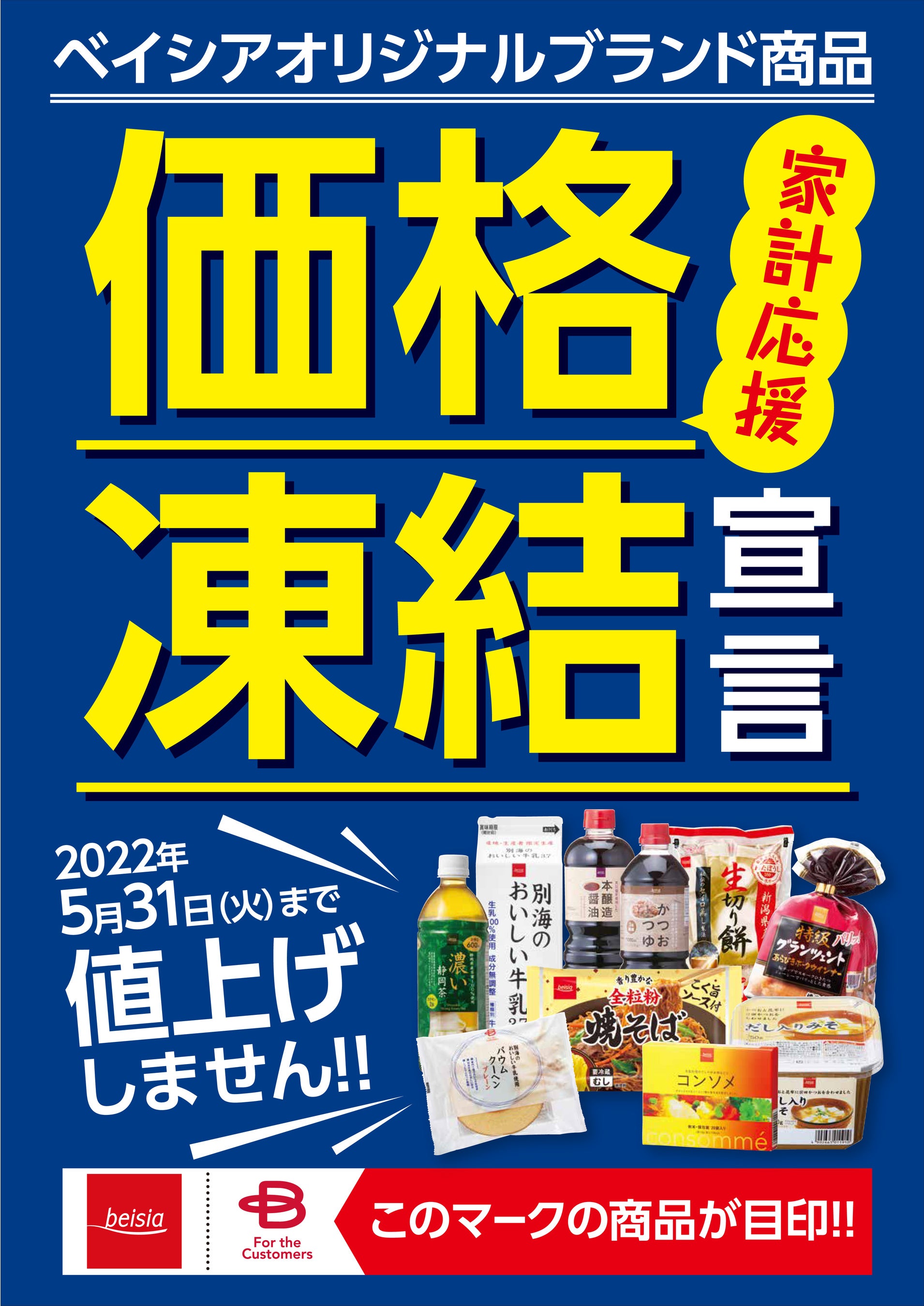 株式会社ベイシア(本社:群馬県前橋市、代表取締役社長:橋本浩英)は、日頃のご愛顧に感謝を込めて、お客様の家計を全力で支えるべく、当社オリジナル商品(約1,300品)のお値段を凍結することをここに宣言致します。