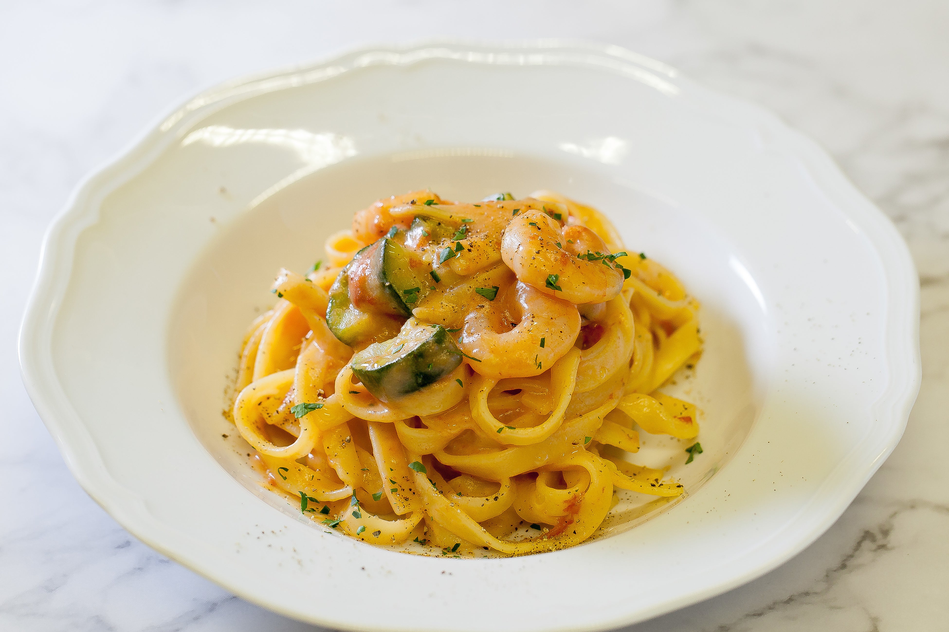 商品名:小エビとズッキーニのタリアテッレ トマトクリームソース