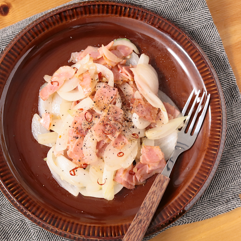 ご参考レシピ︓サッと簡単 新⽟ねぎとベーコンのシンプルペペロン炒め