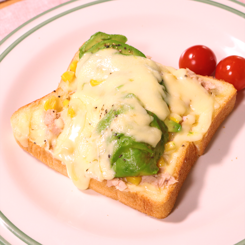 アボカドはパンにももちろん合いますね︕食パンにアボカドとチーズをのせてこんがり焼けば、アボカドトーストの出来上がりです。