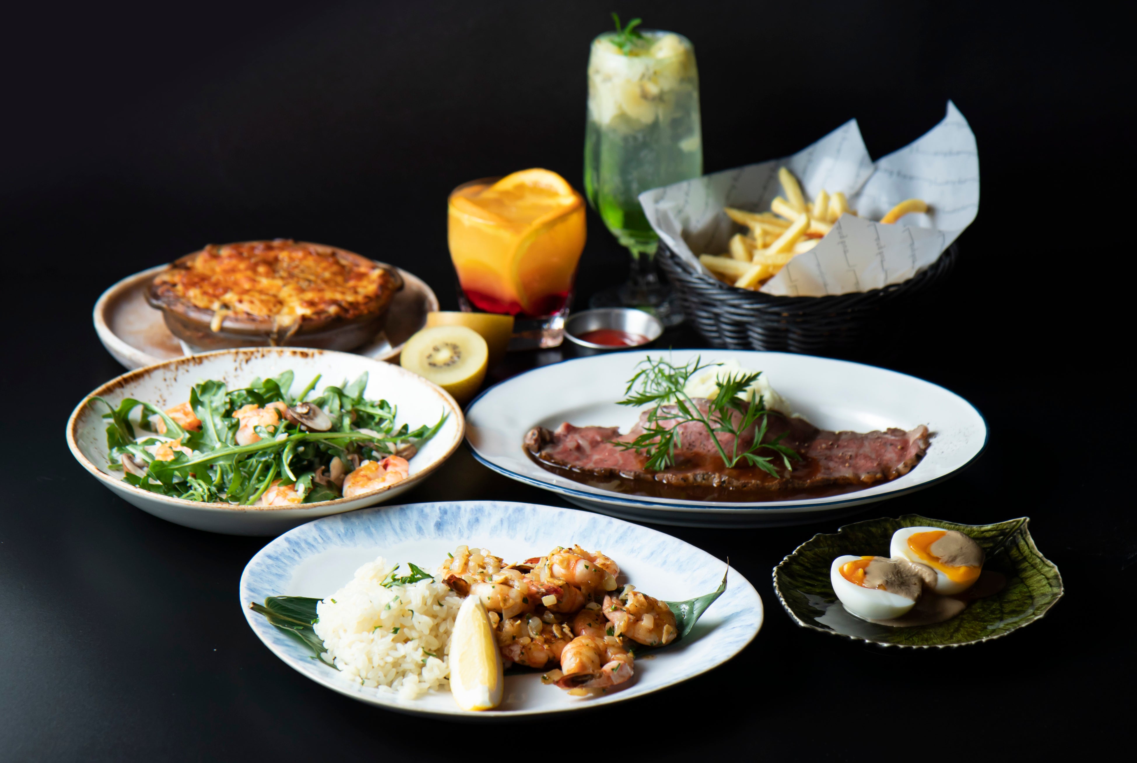淡路島の地の食材を活かしたブランチメニューやオリジナルのフレッシュフルーツのカクテル、スイーツなどをラインナップ。アジアのリゾート&ビーチサイドを彷彿するナシゴレンやベトナム風揚げ春巻きにハワイを意識したガーリックシュリンプ&ライスなどをご用意しています。