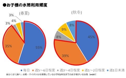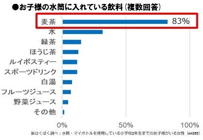 - 一年通して8割超が「週5~6日以上」水筒使用。中身は「麦茶」が83%で圧倒的
