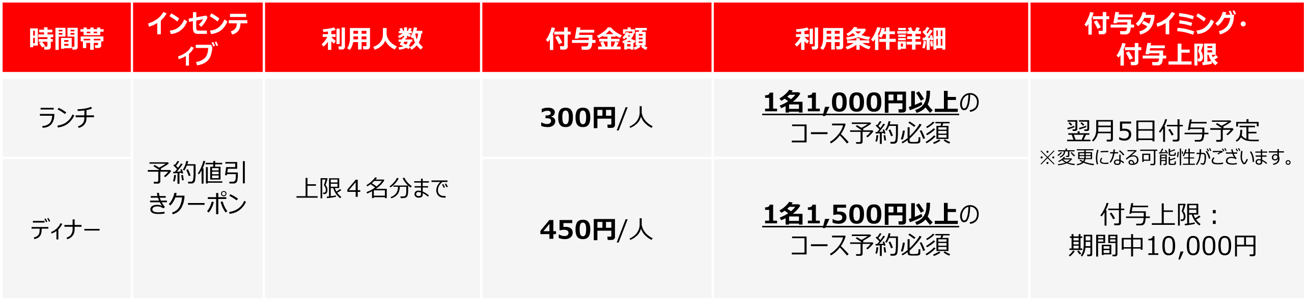 ※まん延防止等重点措置や緊急事態宣言等、政府や自治体の要請により、 一部の指定エリアが本キャンペーンの対象外になる可能性があります。