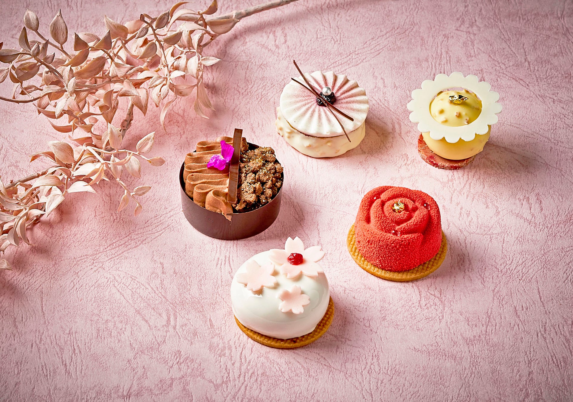 そのフラワーボックスにのせてお届けするのは、ザ・リッツ・カールトン大阪のエグゼクティブペストリーシェフ ファビアン・マルタンが「花」をテーマに創作したスイーツ5品とセイヴォリー4品です。スイーツはそれぞれ桜・スミレ・ポピー・薔薇・ラベンダーをイメージした見た目と味に仕上げています。またセイヴォリーにもエディブルフラワーをふんだんに使い、春の訪れを祝うのにふさわしい華やかなアフタヌーンティーとなりました。