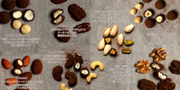 これまでナッツの栄養素に早くから着目し、国内において3種や4種のミックスナッツが多い中で、7種類のナッツを世界各国から高品質のものだけにこだわって調達し、「ななつのしあわせミックスナッツ」として販売してきました。その中で、本当に美味しい、そしてできるだけカラダにも優しい、嬉しいナッツチョコレートをお客様にお届けしたいという想いのもと、何度も何度も試作を繰り返し、2年という時間をかけてもっともバランスの良いナッツとカカオの黄金比率を見出し、遂に完成させました。