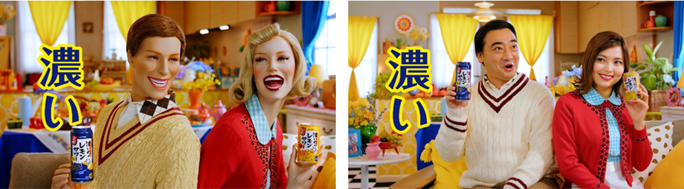 新CMでは「マネキン」のフーコン夫妻と「人間」のジャングルポケット斉藤夫妻が、全く同じシチュエーションとセリフで登場する2段構成で、リニューアルした「サッポロ 濃いめのレモンサワー」を紹介します。フーコン夫妻と斉藤夫妻、それぞれのバージョンを見比べながらお楽しみください。