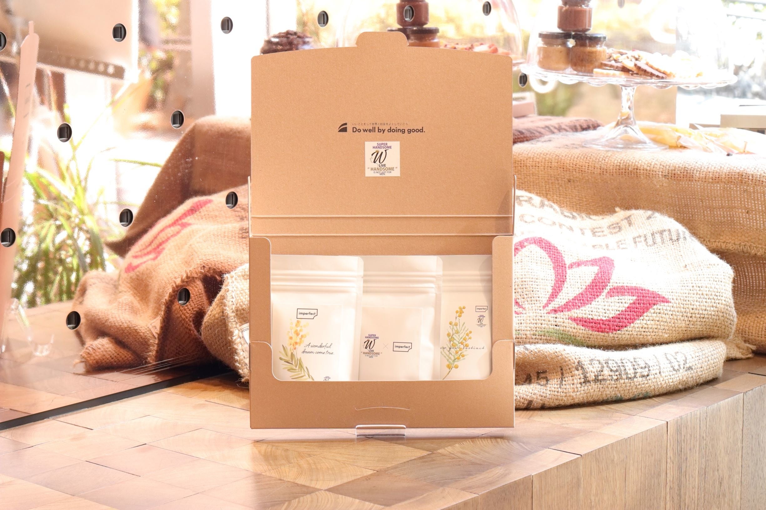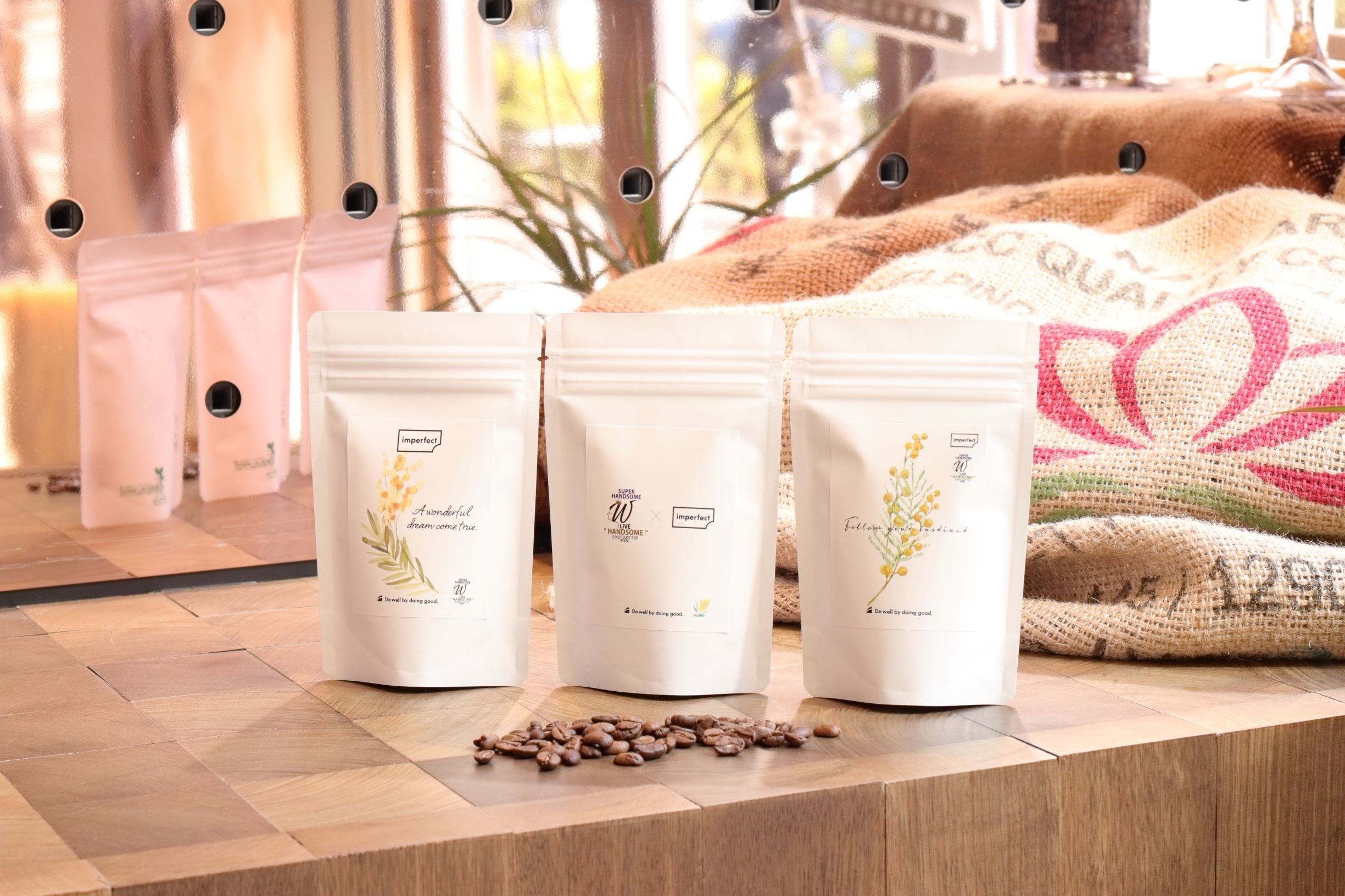 本コラボレーション商品には、imperfectが厳選するシングルオリジンの豆を使用した本商品限定のブレンド豆2種類、及びシングルオリジン1種類、の計3種類の豆をご提供致します。