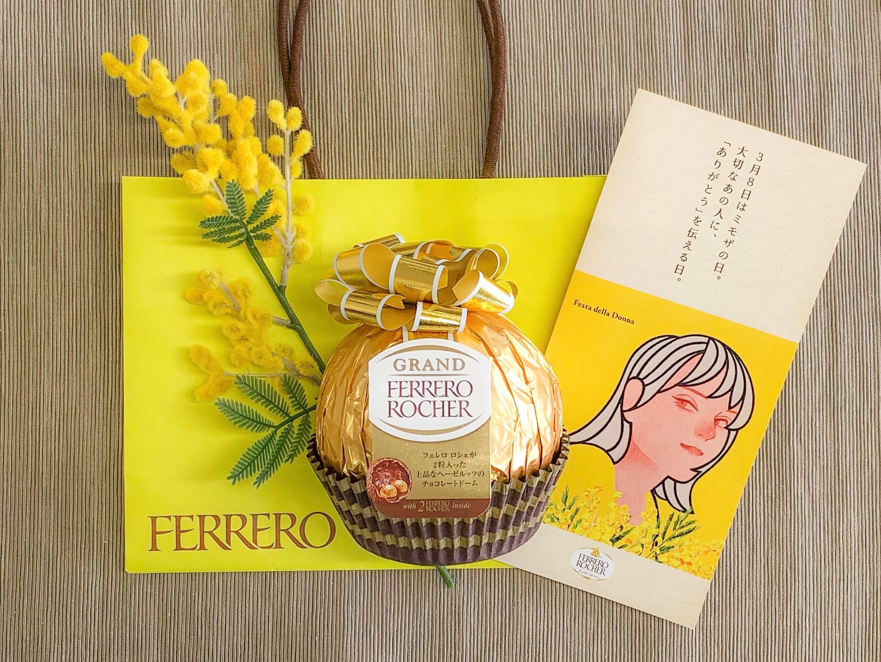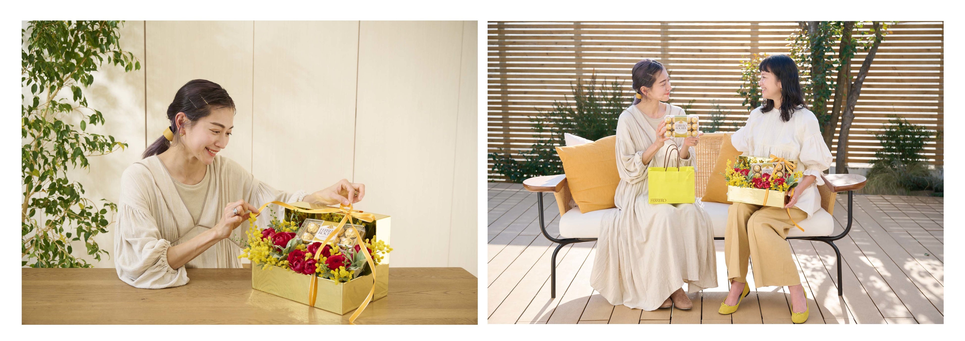 イタリアでは国際女性デーである3月8日「フェスタ・デッラ・ドンナ=女性の日」に、大切な女性たちへミモザの花を贈り感謝を伝える習慣があります。彼から彼女へ、姉妹や友達同士はもちろん、孫からおばあちゃんへミモザを贈り「ありがとう」を伝えます。そんな素敵な習慣が日本でも広がりつつあるいま、ミモザの花に「フェレロ ロシェ」を添えて贈る新しいセレブレーションのカタチをご提案。日比谷花壇がプロデュースした「フェレロ ロシェミモザフラワーボックス」からインスパイアされて、自分らしくアレンジしたギフトを贈れば、受け取ったすべての女性たちが笑顔になれるはずです。