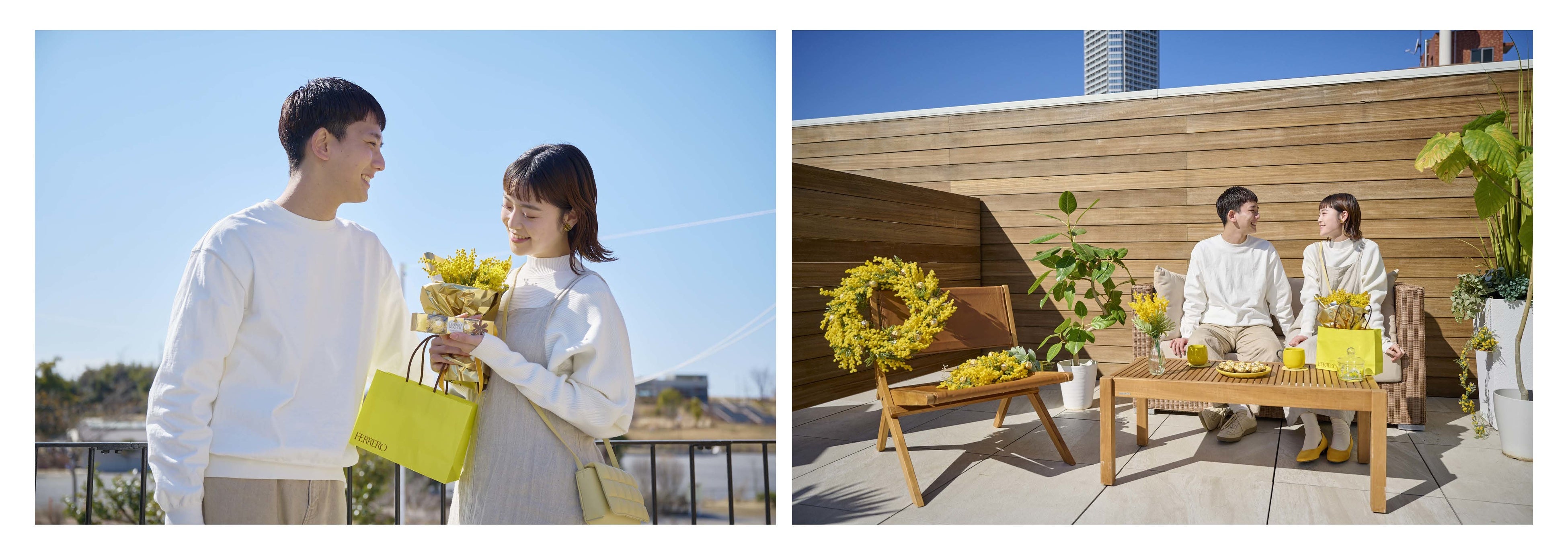 リアルなイタリアの街並みを再現したラ チッタデッラ(神奈川県川崎市)にてフェアを開催。対象店舗でミモザメニューをご注文いただいた方に「フェレロ ロシェ1粒」をプレゼント。また、ミニフラワーボックスを実際につくるワークショップではフォトコンテストが開催され、優勝者に「フェレロ ロシェ 1年分(360粒)」が贈られます。ミモザの花のイエローで彩られた雰囲気いっぱいのラ チッタデッラで「ミモザの日」を満喫できます。