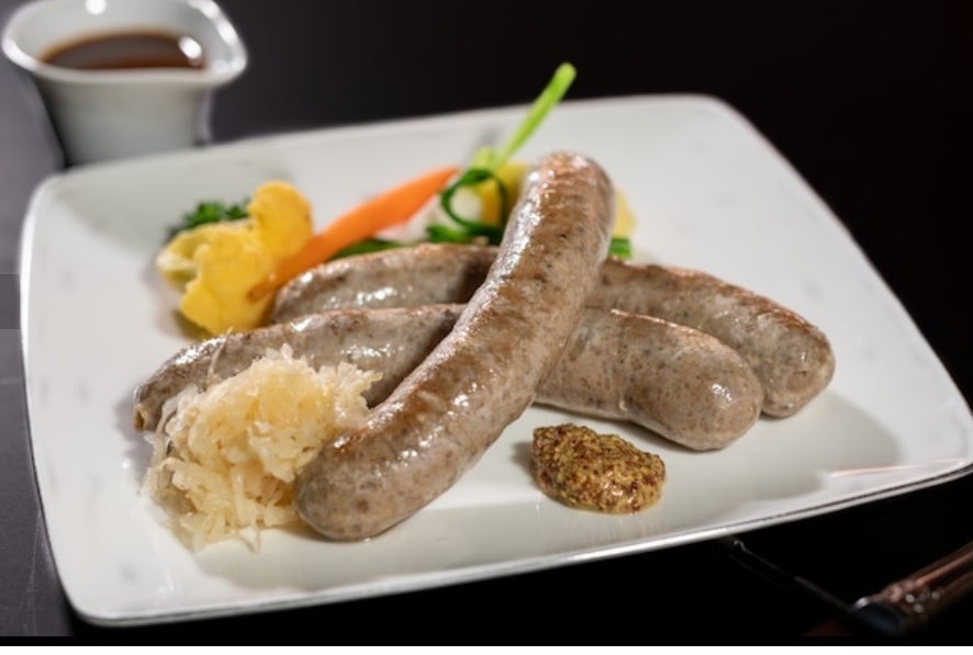 レストランで高い人気を誇る「手作り粗挽きソーセージ」。兵庫県産の八鹿豚を、挽き目にこだわり肉肉しい食感に仕上げています。ノンスモークなので、豚肉の味をダイレクトにお味わいいただけるとてもジューシーな自家製のソーセージです。