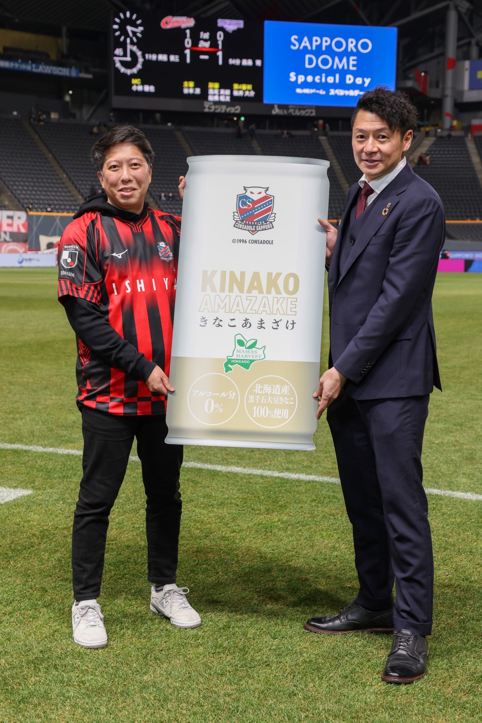 この度、クラブパートナーであります、株式会社サッポロドラッグストアー様より北海道コンサドーレ札幌トップチームへ、コンサドーレきなこ甘酒を7,000缶(約140万円相当)寄贈していただきます。
