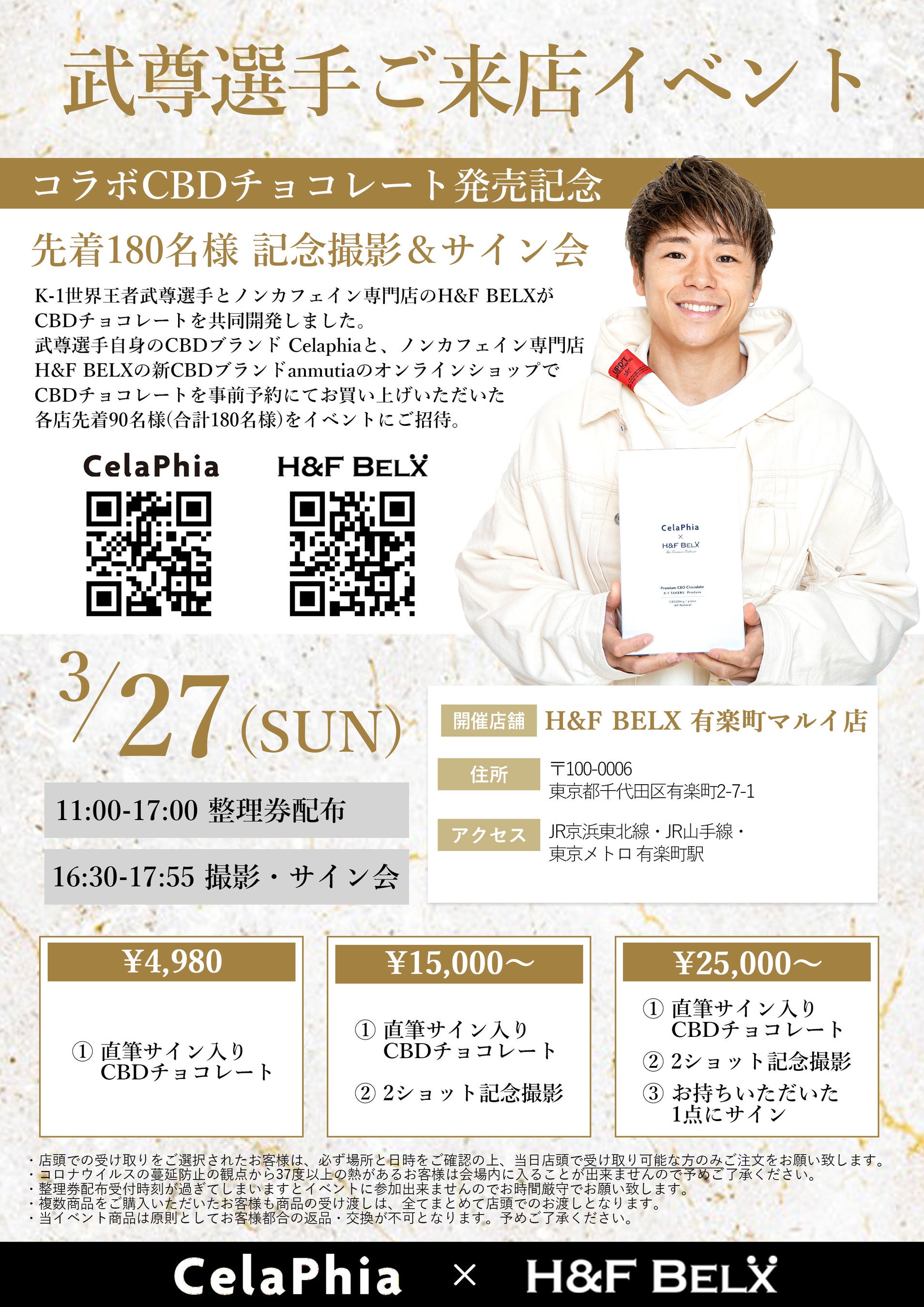 Celaphia、H&F BELXの各店先着90名(合計180名)限定で、武尊選手来店イベント開催!