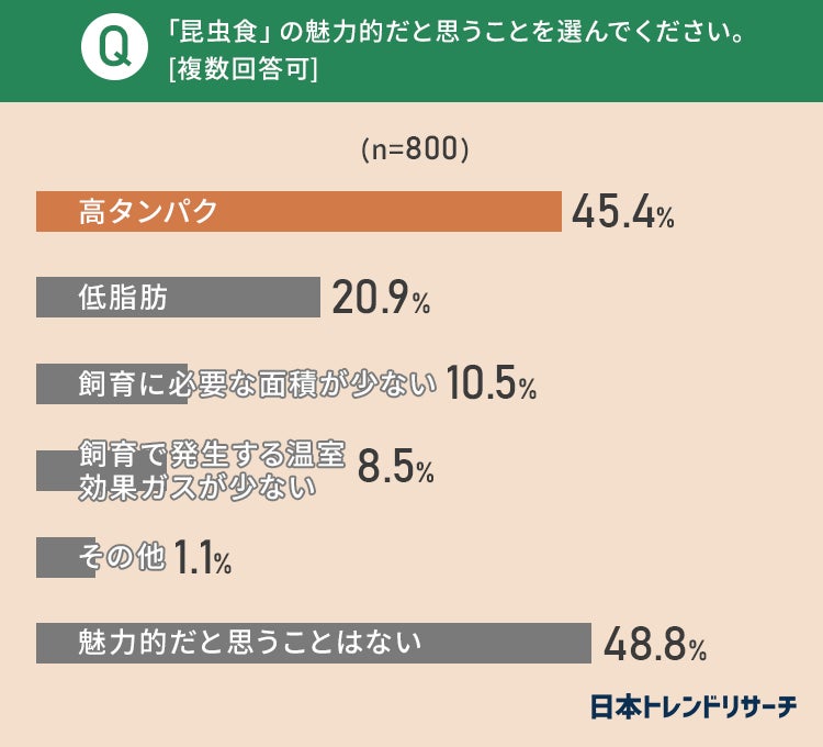 ■昆虫食の魅力、45.4%が「高タンパク」と回答