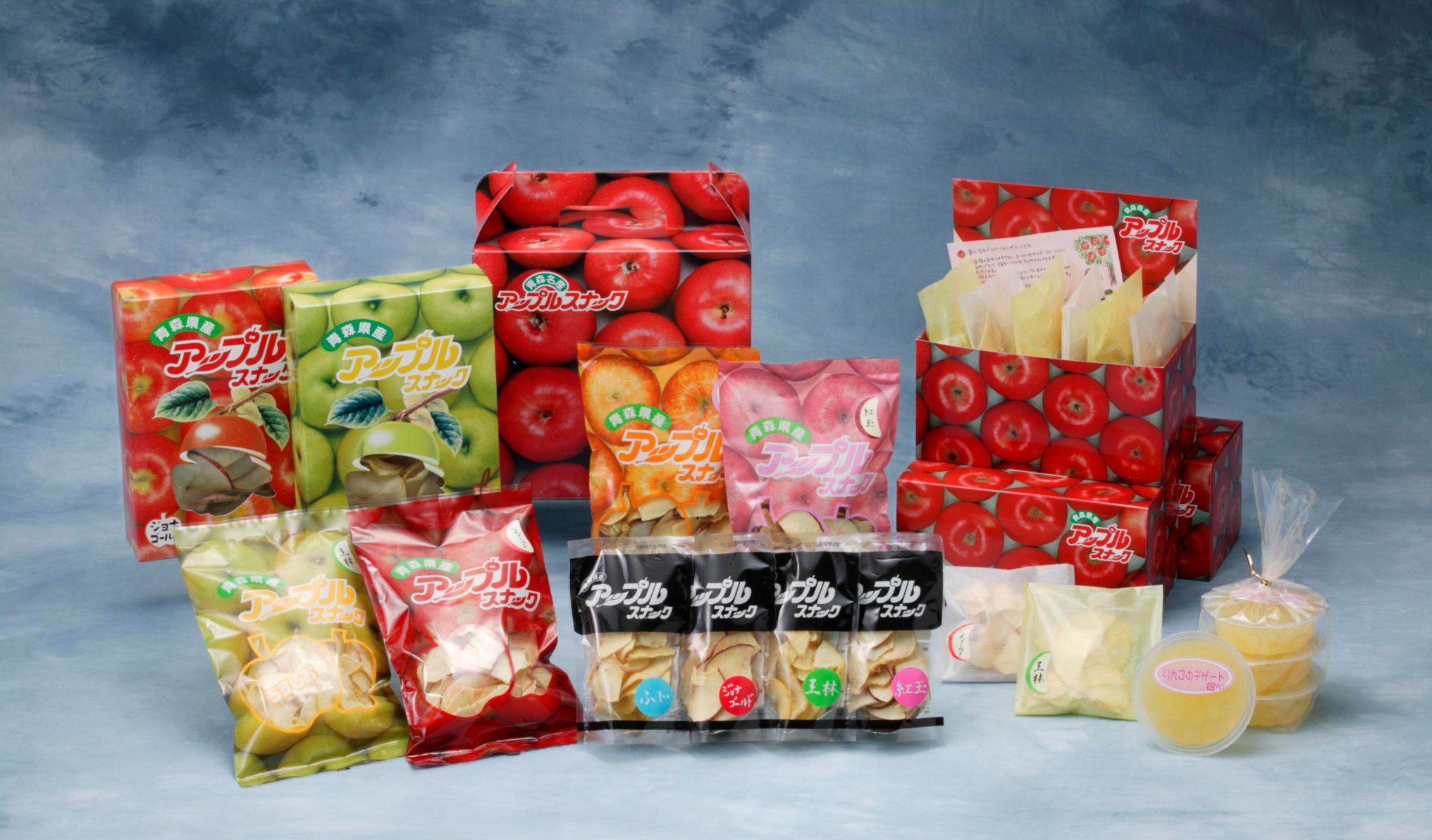 アップルアンドスナック株式会社は本社工場でハラル認証を取得しました。青果のリンゴも輸出は好調です。しかしながら、青果は天候や賞味期限等の問題もあり、通年で美味しいりんごを召し上がっていただくことは難しいのが現実です。そこでアップルスナックは見た目だけではなく、食べておいしいりんごを選ぶことから始まります。食べて美味しいりんごを本来の美味しさを損なうことがないよう余計な味付けや添加物、防腐剤を使うことなく、りんごそのものを自社独自のオリジナルな方法でカットし、乾燥して、りんごの風味を極限まで残したスライス型のお菓子、つまりチップスに仕上げています。これで通年おいしく食べていただくりんごのお菓子ができました。そして原料の青森県のりんごの鮮度を長期間保つ※CA貯蔵庫があります。りんごの品種別に貯蔵条件を変え、一年中美味しいりんごを供給する体制が整っております。私たちは世界でただ一社、アップルスナックを馬鹿正直に一年中製造している青森の会社です。