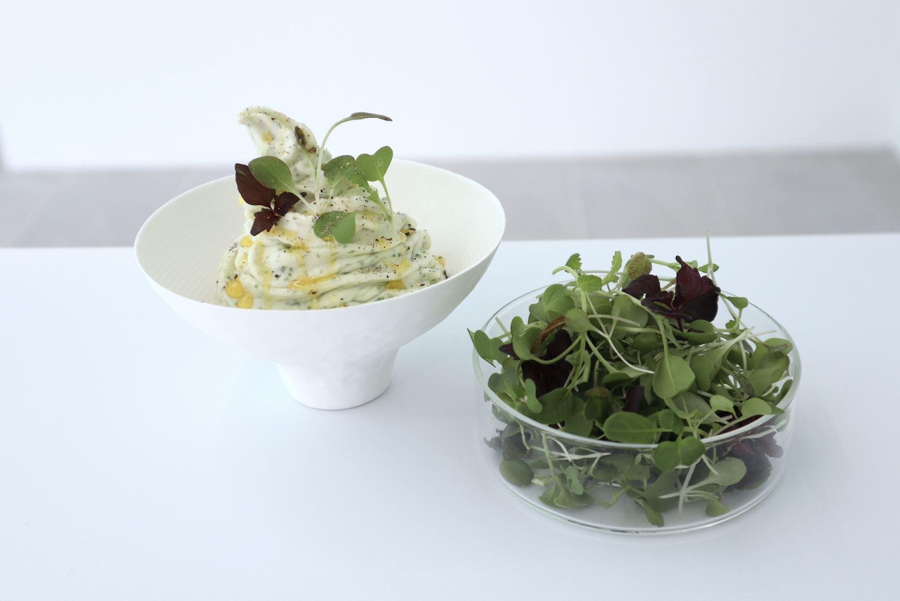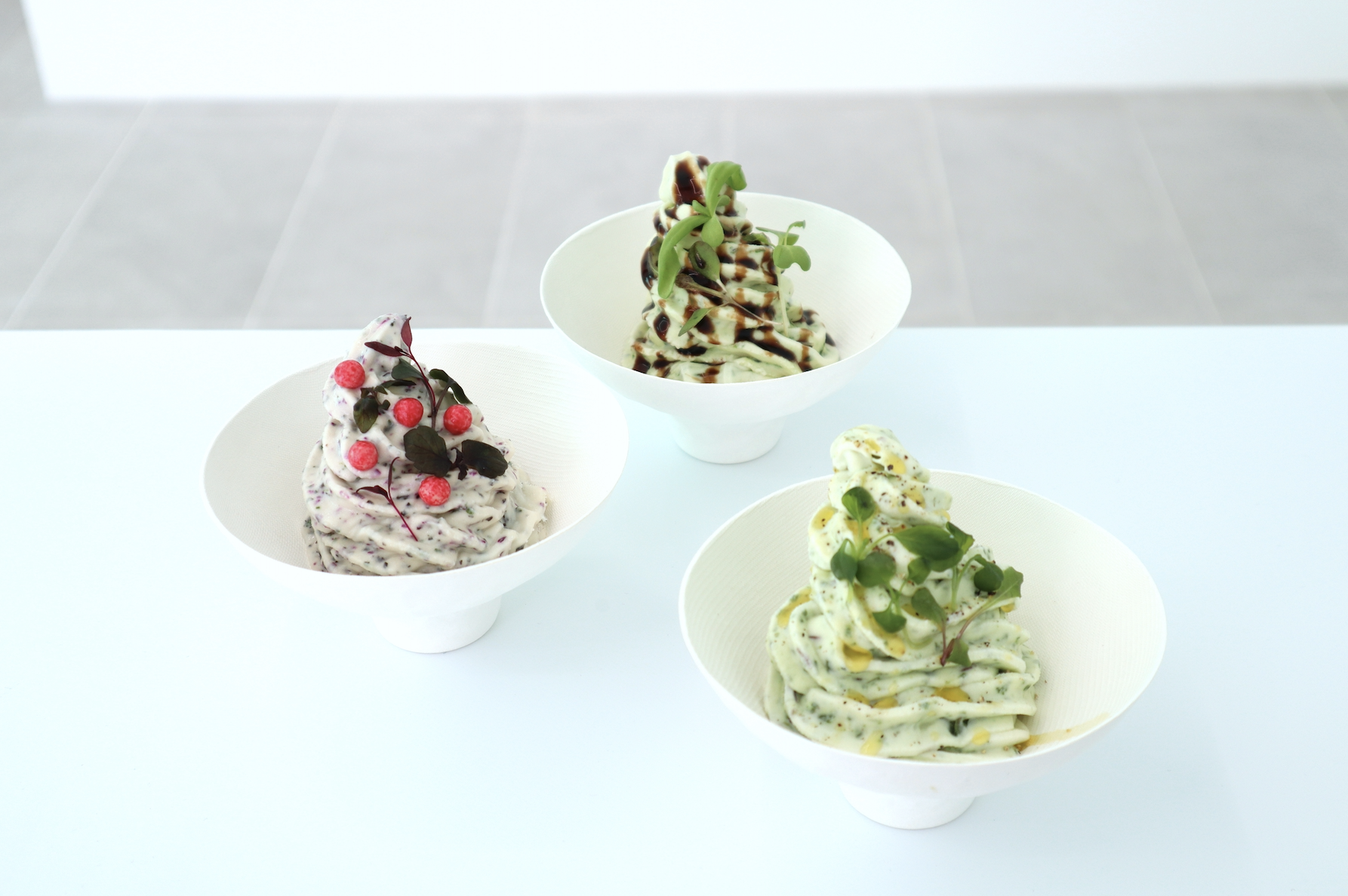 「アイスクリームを背徳菓子から道徳的口福に」をコンセプトに、自社栽培された栄養価の高いフレッシュなマイクログリーンが常時20種類、3種のオリジナルアイス、4種類のこだわりのトッピングを、それぞれ好みの組み合わせで楽しむ、風味豊かな”ギルトフリーアイスクリーム”。組み合わせの総数は13,680通り。その日の気分に合わせて自分好みのアイスクリームをお楽しみください。