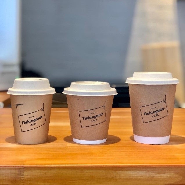 フィッシングナッツカフェは、「サステナブル」をコンセプトに、店内での飲食には使い捨てになるものを極力使用せず、陶器マグカップやバンブーファイバーと樹脂からできた食器でご提供しています。その他、以下の取り組みによって環境への配慮をしています。