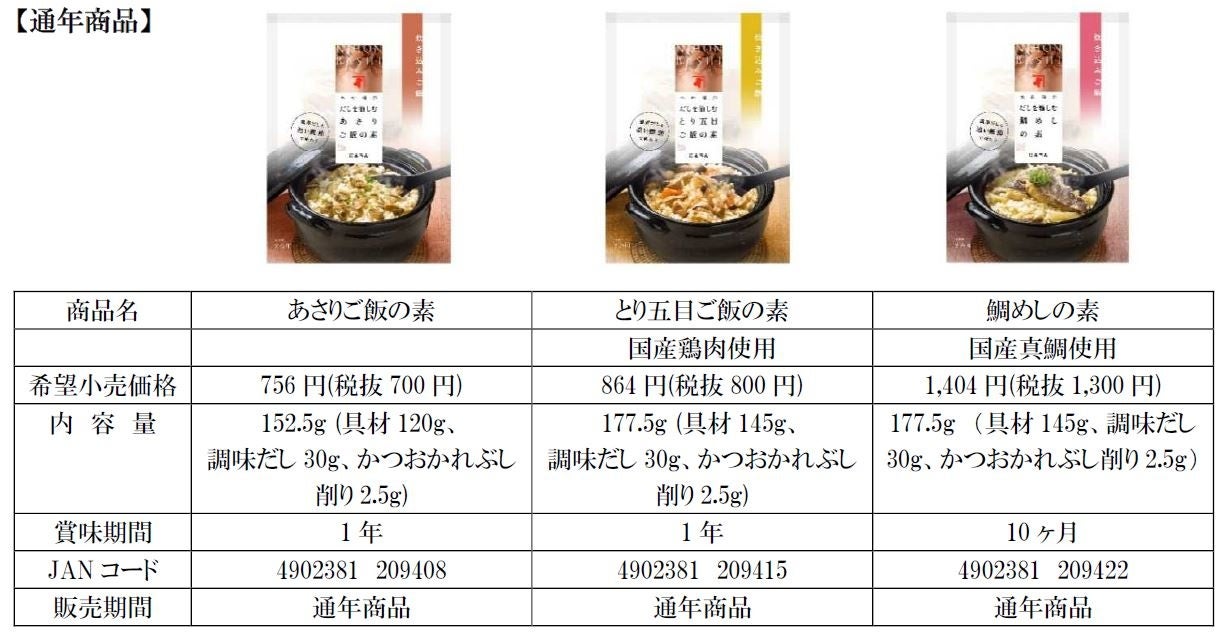 株式会社にんべん(東京都中央区、代表取締役社長 髙津伊兵衛)は、「だしを愉しむ 炊き込みご飯の素」シリーズより、春季限定商品「だしを愉しむ たけのこご飯の素」を2022年3月1日(火)より、新発売いたします。