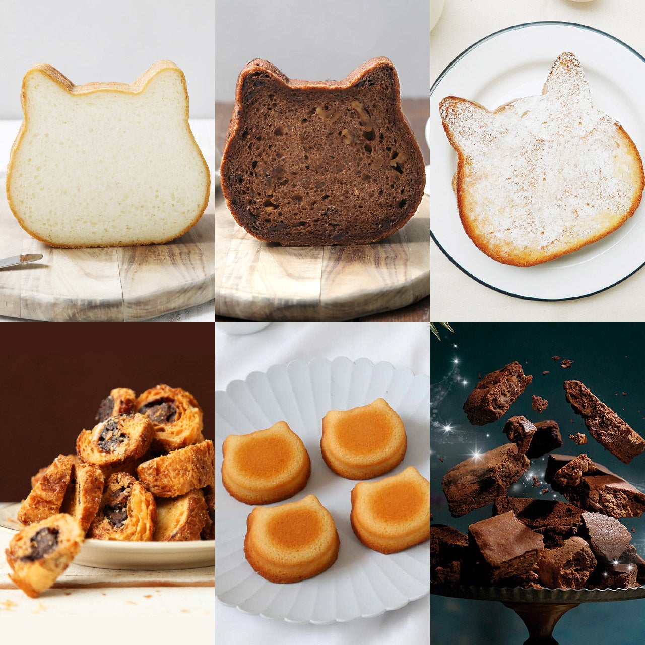 ・内容:ねこねこ食パン プレーン1個、ねこねこ食パン チョコ1個、ねこねこフレンチトースト2枚、チョコリングラスク1袋、ふぃにゃんシェ1箱(4個入り)、世にもおいしい割れチョコブラウニー1袋、チョコペン2本