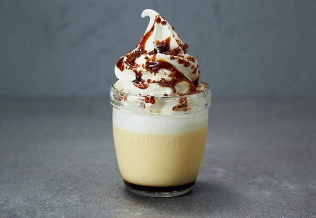 たまごとミルクの風味豊かでぷるんとなめらかなカスタードプリンに、北海道産の生乳を使用した濃厚でミルキーなソフトクリームを重ねました。カリッとした食感のキャラメリゼとほろ苦くコクのあるカラメルソースがアクセントに。