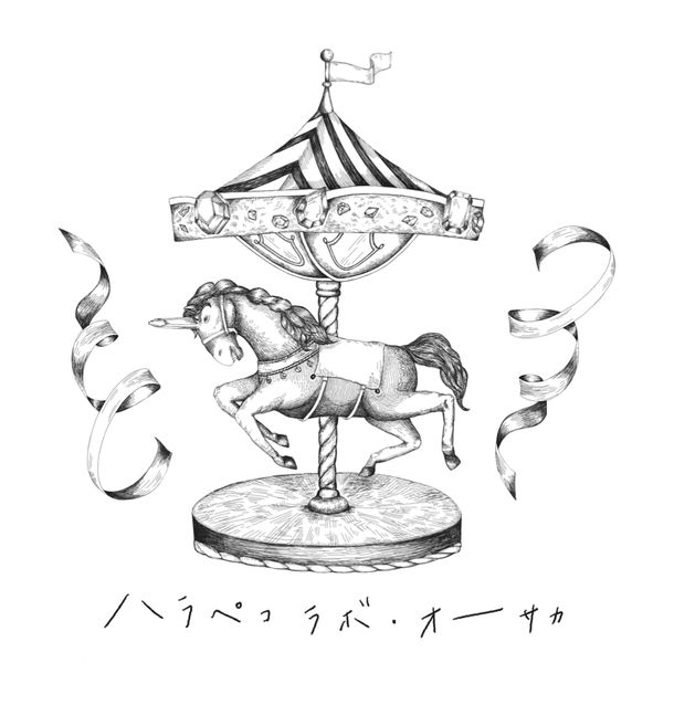 大阪店の看板となる『サーカス』をイメージしたメリーゴーランドのイラストには、よく見ると宝石がたくさん散りばめられており、実はお馬さん(ユニコーン)のツノも水晶で出来ている設定です。このイラストはoudmijinさんにお願いし、オリジナルで大阪店のために描き下ろしていただきました。