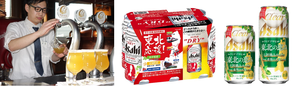 2016年10月からは、アサヒグループでも積極的な商品展開に取り組みました。アサヒグループのクラフトビール醸造所「隅田川ブルーイング」では、「希望の大麦」を使ったクラフトビール『希望の大麦エール』を醸造し、グループの外食企業であるアサヒフードクリエイトの店舗で提供しました。また2017年には、「希望の大麦」を一部使用した新ジャンル「クリアアサヒ」の限定商品を発売しました。この「希望の大麦」を使ったクラフトビールと「クリアアサヒ」の期間限定販売はその後も毎年継続し、「希望の大麦プロジェクト」の取り組みを広く知ってもらう大きな機会となっています。2020年には「希望の大麦」を一部使った『アサヒスーパードライ 東北復興応援缶』を限定発売し、東北地方における復興支援に取り組みました。