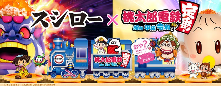 株式会社あきんどスシロー(本社:大阪府吹田市、代表取締役社長:堀江 陽)は、コロナ禍における生活スタイルの多様化に伴い変化していく日常の中でも、「うまいすしを、腹一杯。うまいすしで、心も一杯。」という企業理念とともに、“回転すし”ならではの“目で見る楽しさ”や“体験価値”をご提供する新たな施策の一環として、「桃太郎電鉄 ~昭和 平成 令和も定番!~(以下、桃鉄)」とのコラボ商品を、3月9日(水)より期間限定で販売いたします。