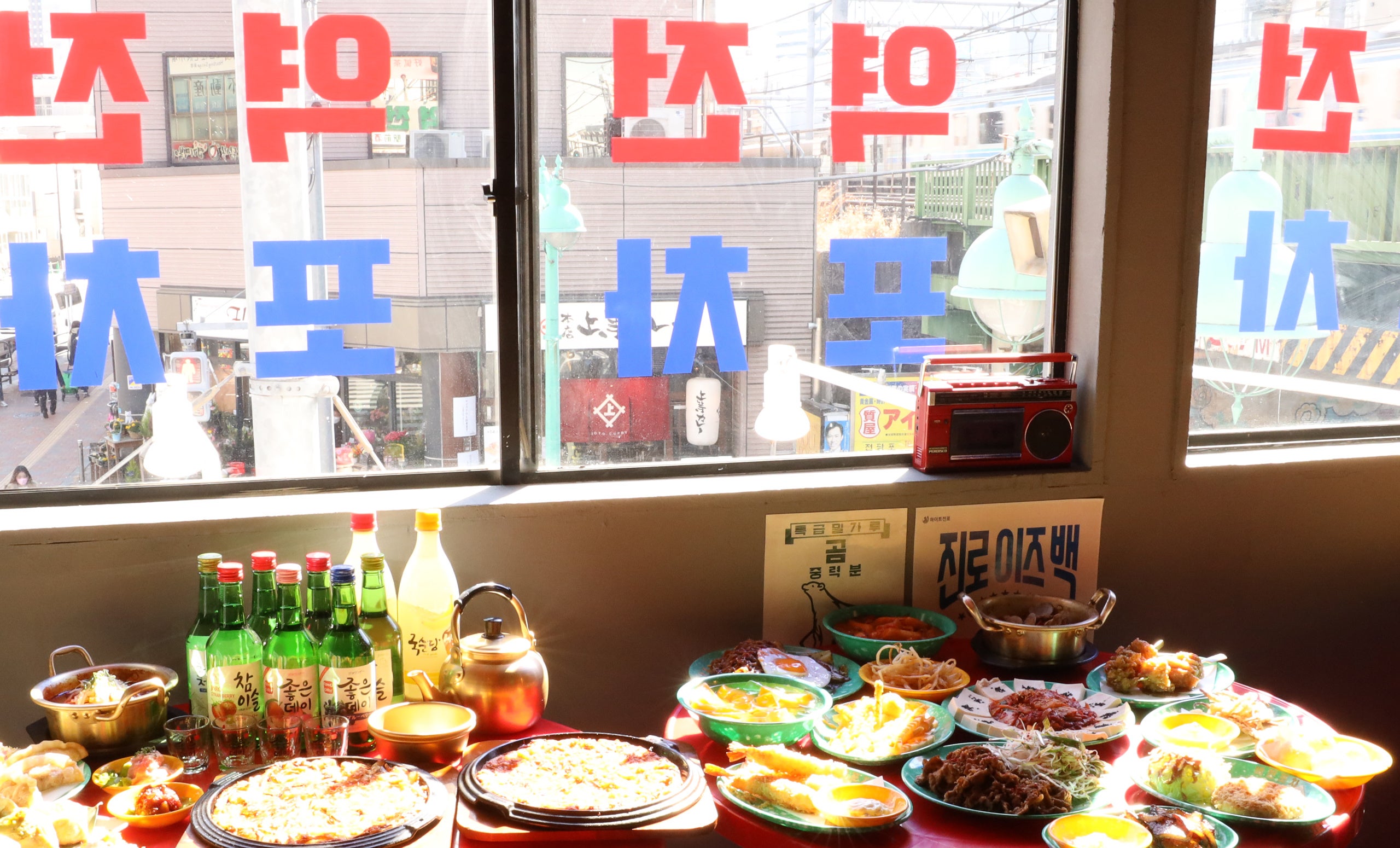 テーブルは韓国の屋台をモチーフにして、韓国旅行に来た気分を感じられます。
