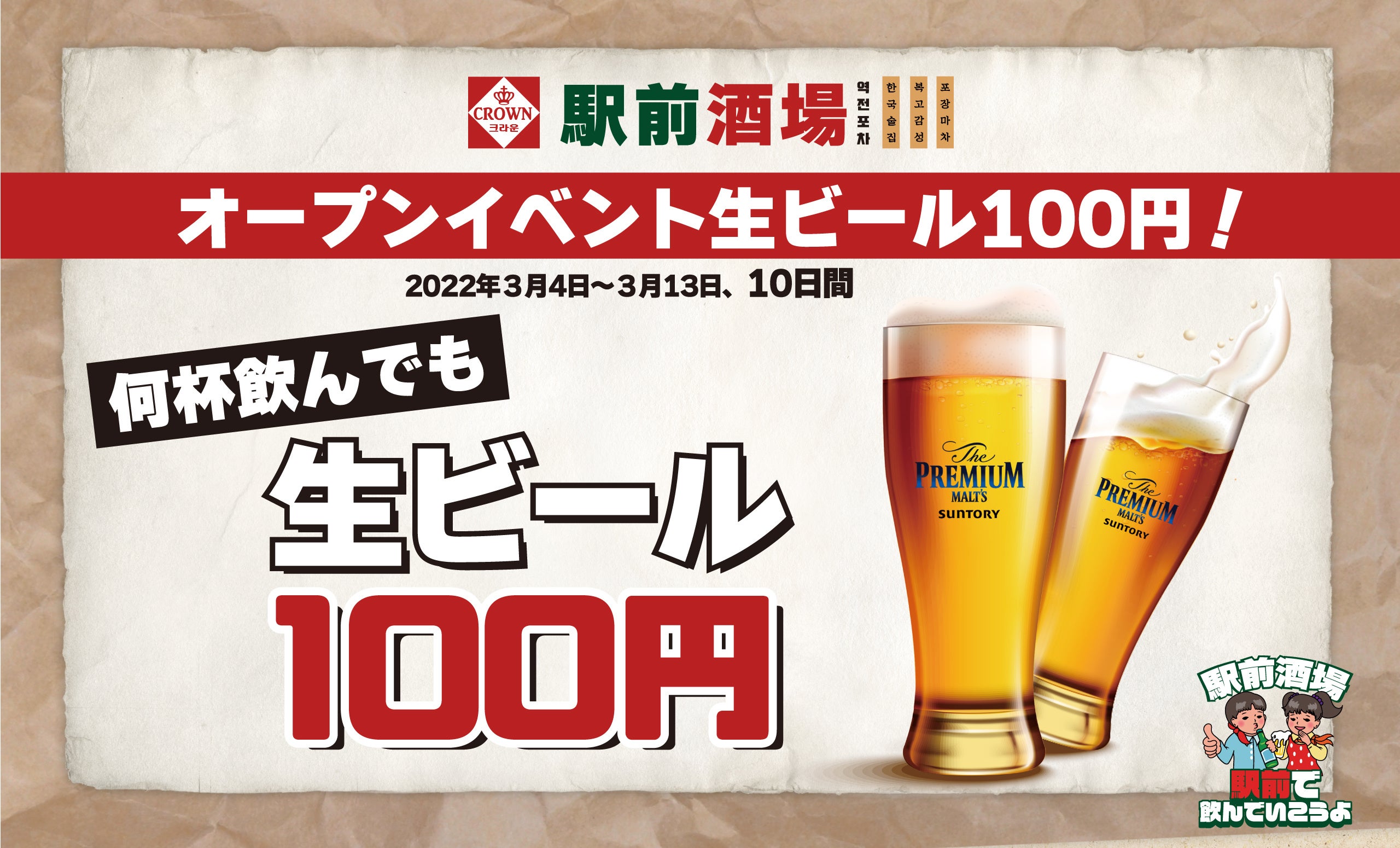 韓国料理と生ビールを100円で楽しめるこの機会をお見逃しなく!