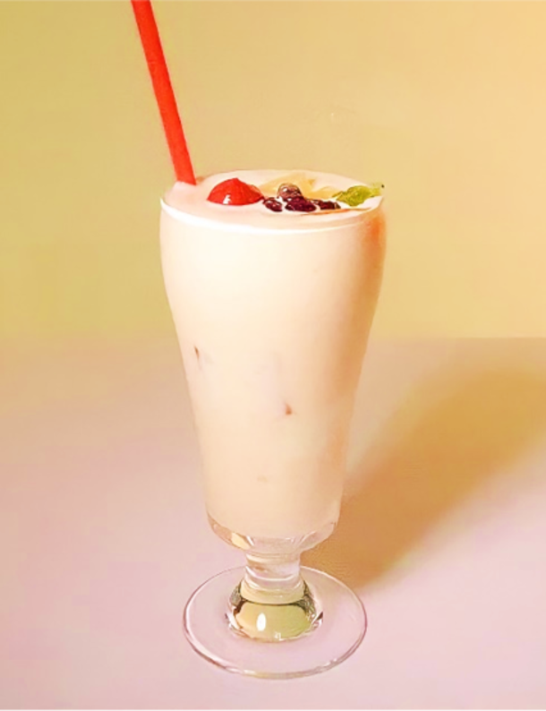 丸永製菓『しろくま』240mlに対して、日清ヨーク『ピルクル400』150mlを、よーく混ぜ合わせるだけ!練乳と乳酸菌飲料、乳と乳のコラボレーションは合わないはずがありません!『しろくま』は、かき氷なので、自然とミキサーして作ったような舌触りに。フルーツもゴロゴロ入っているので、本場大阪のミックスジュースよりもジューシーになります!尚、『ピルクル400』は特定保健用食品で、1日の摂取目安量として65mlを推奨しています。作ったら2人でシェアして楽しもう!