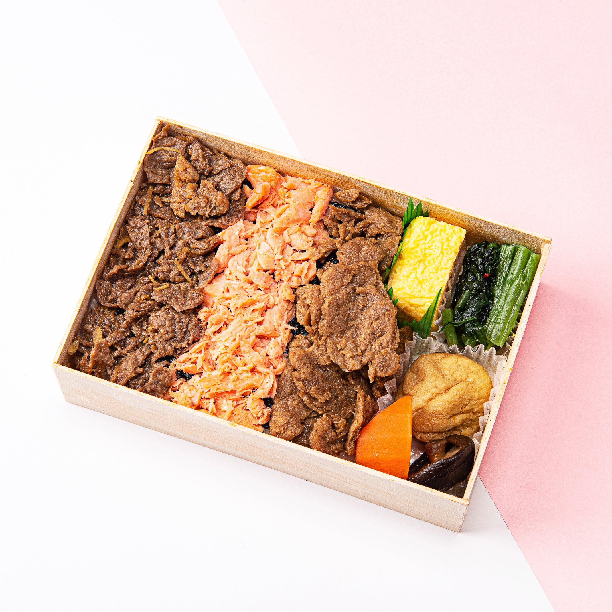 <醸す>代替え肉とは呼ばせない!ネクスト牛丼×ネクストハラミ×魚の三色海苔弁当(1折) 1,620円