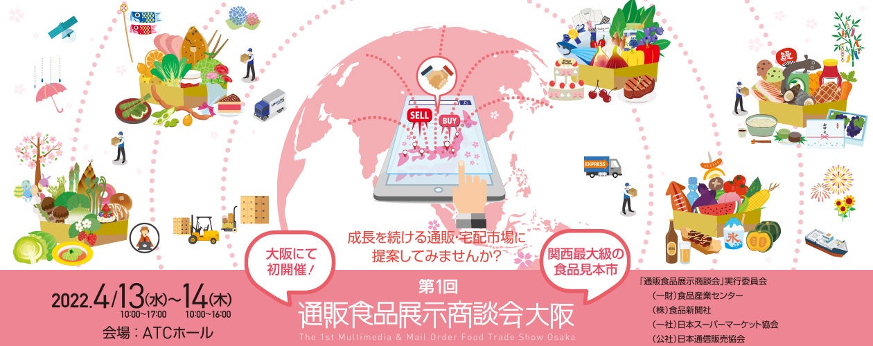 来る、4月13日(水)~14日(木)の2日間、ATCホール(大阪市住之江区南港)に於いて、第1回「通販食品展示商談会」大阪が開催されます。