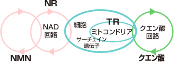 遺伝子保護を行うNAD回路と、エネルギー代謝を行うTCA回路(クエン酸回路)の2つのサイクルをケアするダブル処方で、毎日の健康維持のサポートを行います。