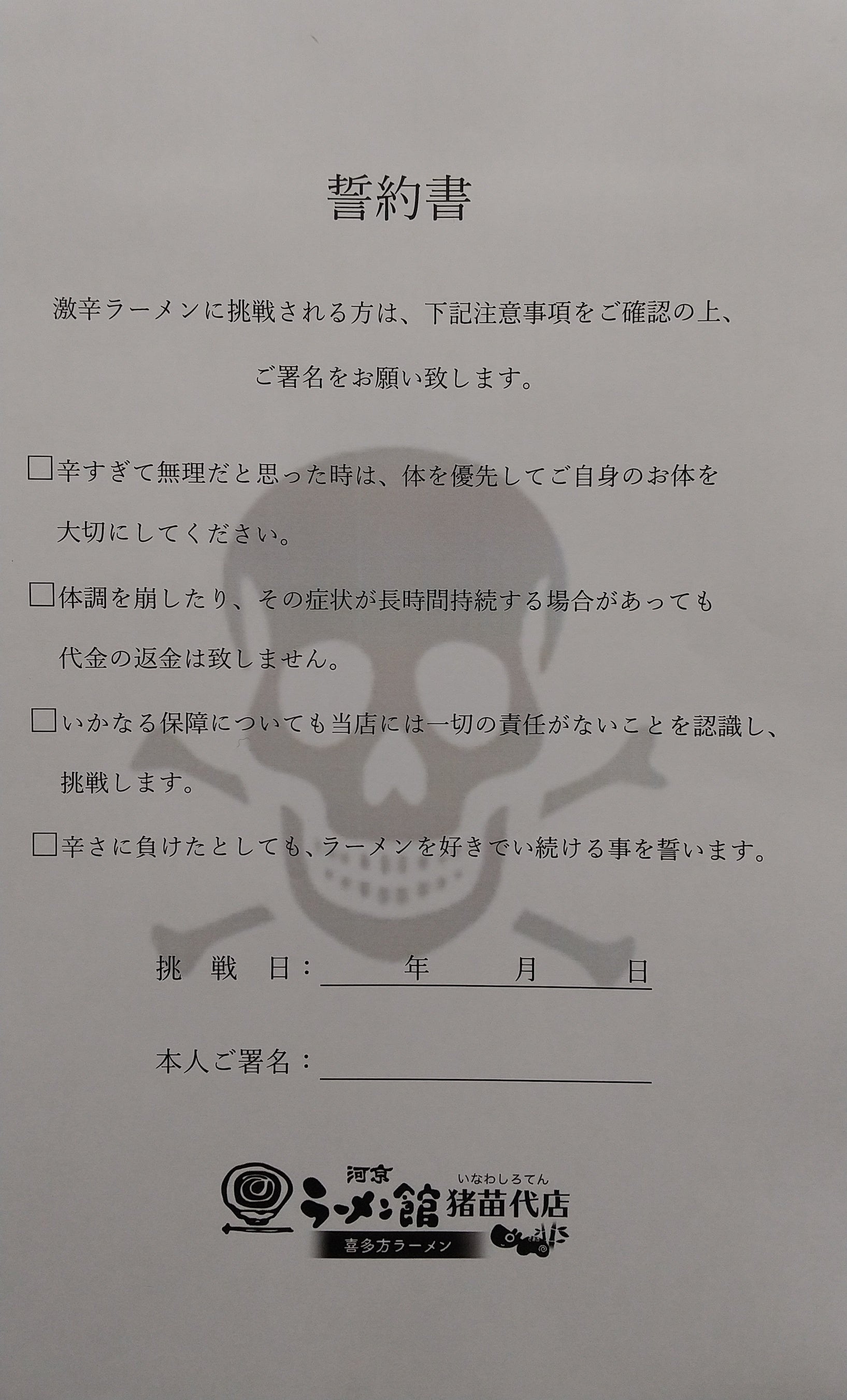 ※挑戦されるお客様には注意事項をご理解頂いた上、誓約書のご記入頂きます。