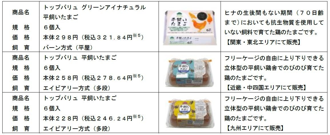 イオンは3月4日(金)より、東京・千葉・愛知・大阪・岡山・徳島の「イオン」「イオンスタイル」のうち11店舗にて、太陽と風を浴びながら地面や床を自由に動き回ることができる“ケージフリー(※1)”にて飼育し、有機飼料を与えた鶏から産まれた「トップバリュ グリーンアイオーガニック 平飼いたまご」を発売(※2)します。<https://www.topvalu.net/ge_hiragaitamago>