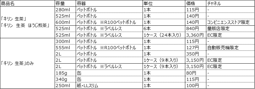 1.商品名 「キリン 生茶」「キリン 生茶 ほうじ煎茶」